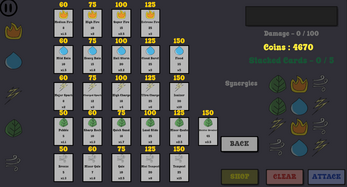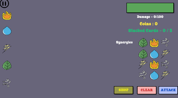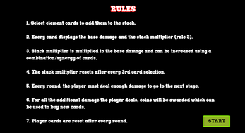A card based point and click game, where player stack element cards to increase the damage meter. The theme 'Connections' is involved in the game mechanic of card synergies and damage multipliers.
